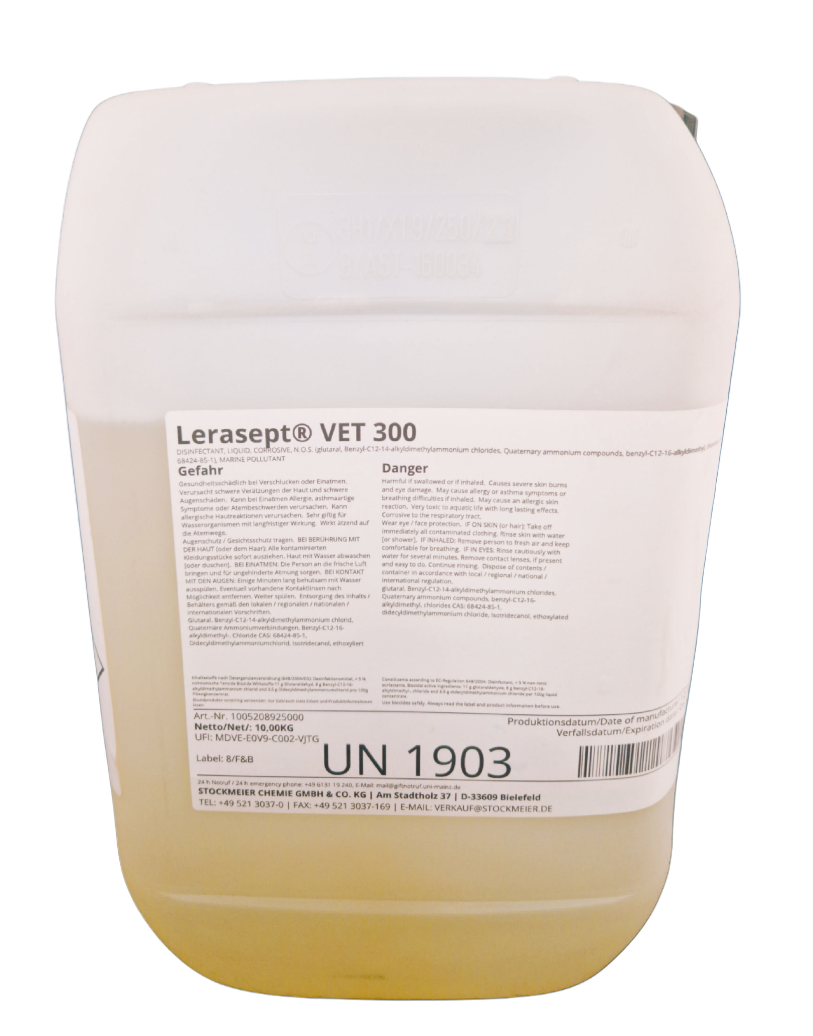 Lerasept® VET 300 ist ein formaldehydfreies Breitband-Flächendesinfektionsmittel mit leistungsstarken oberflächenaktiven Wirkstoffen und ausgeprägter Tiefenwirkung. Es wird für die Routinedesinfektion von Tierställen, Stalleinrichtungen und Gerätschaften sowie für Transportfahrzeuge eingesetzt.